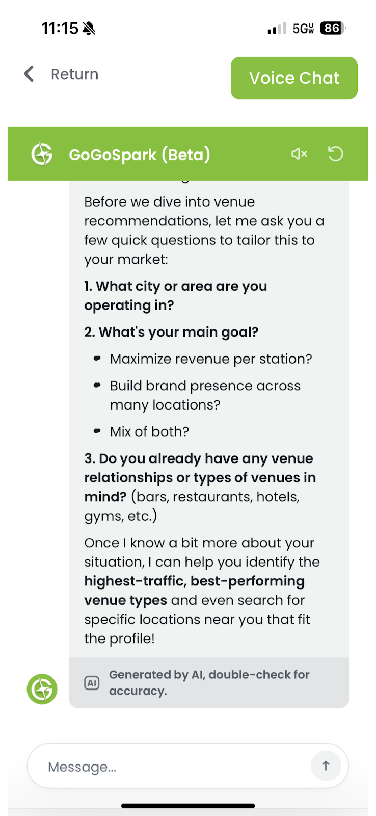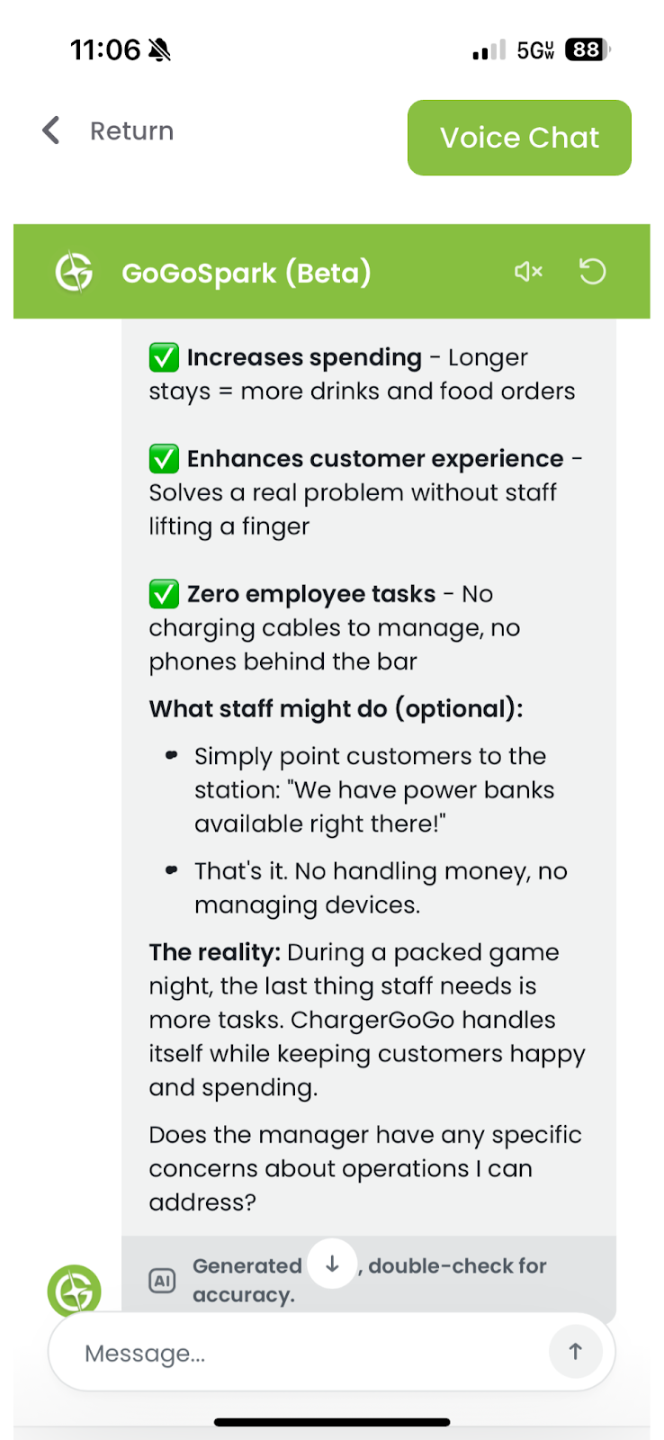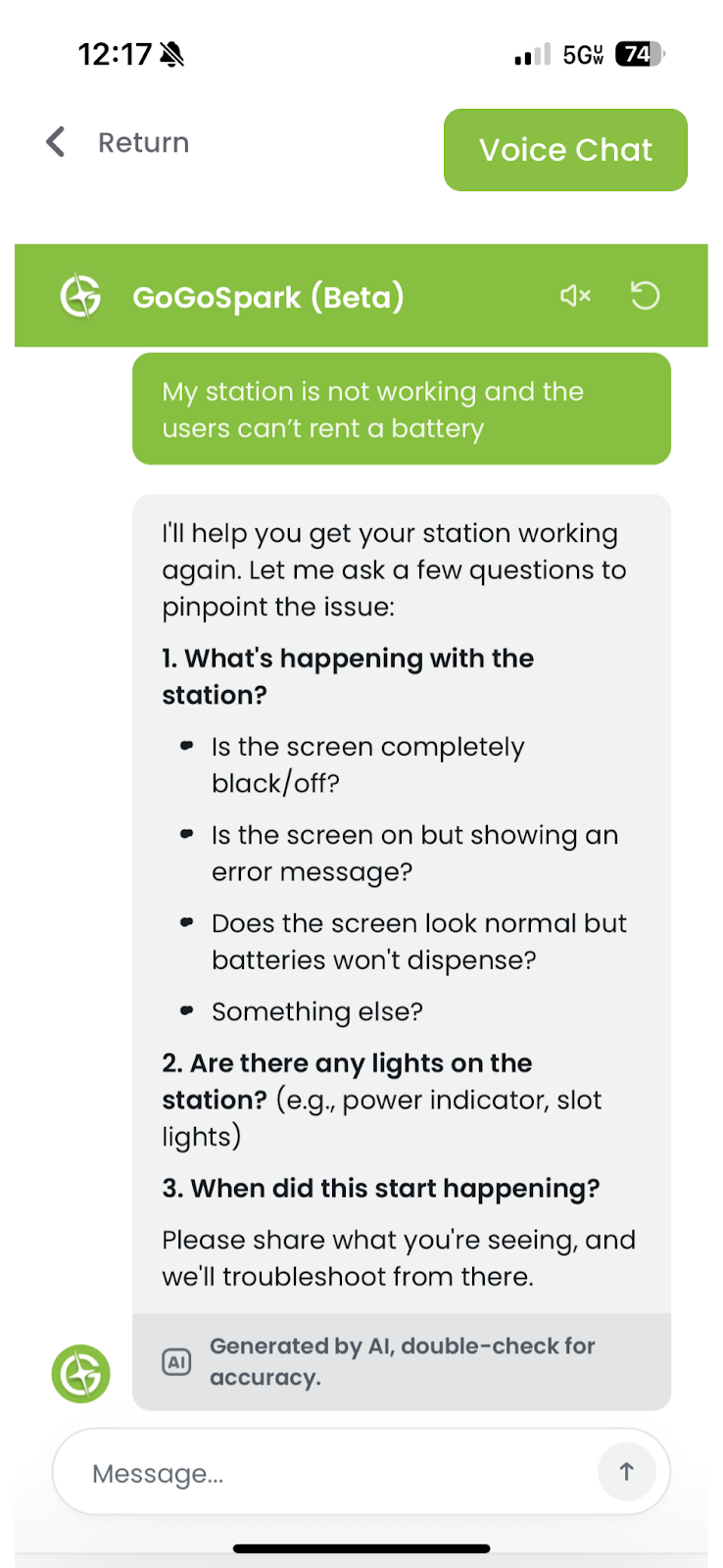 GoGoSpark is an AI-powered assistant designed to help Distribution Partners (DPs) operate, grow, and troubleshoot their ChargerGoGo business. This guide explains how to ask GoGoSpark questions effectively so you get accurate, actionable answers when: